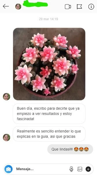 Gracias a las herramientas digitales y el poder de internet, ha tenido la oportunidad de guiar y ayudar a miles de personas de diferentes partes del mundo a adentrarse en este maravilloso mundo de las suculentas. Algunos han logrado transformar su pasión en un negocio rentable y sostenible en el tiempo, mientras que otros han encontrado en este arte un pasatiempo que les llena de satisfacción y conexión con la naturaleza.