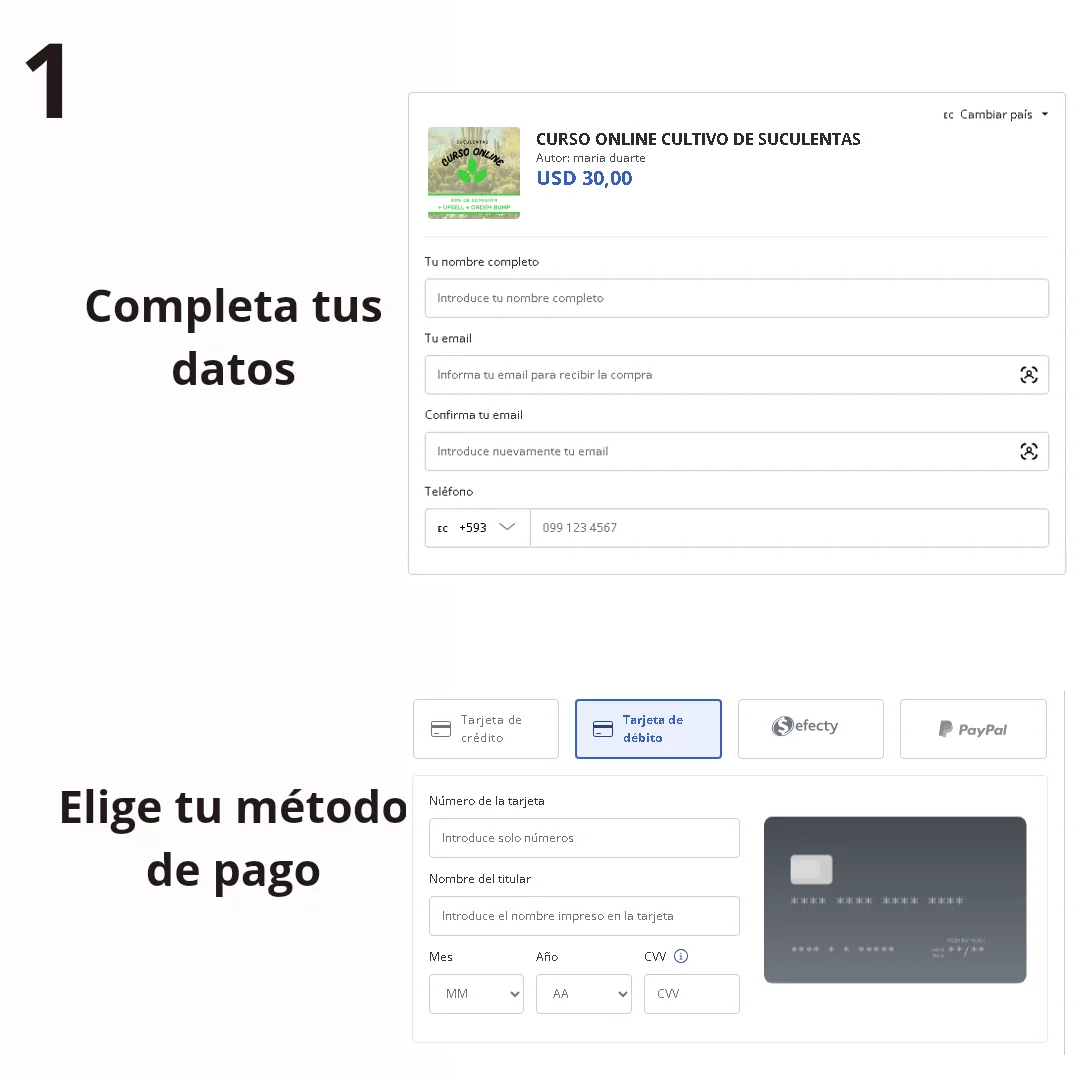 No te preocupes el pago es realizado de forma 100% segura por medio de Hotmart, la plataforma de venta de productos digitales más grande y segura del habla hispana. El pago se lo haces directamente a ellos y son ellos los encargados de enviarte de inmediato el acceso para ver el curso en la misma plataforma de Hotmart, así que no hay riesgo alguno. Inmediatamente haces el pago te llega al correo un usuario y contraseña para acceder a la plataforma.
