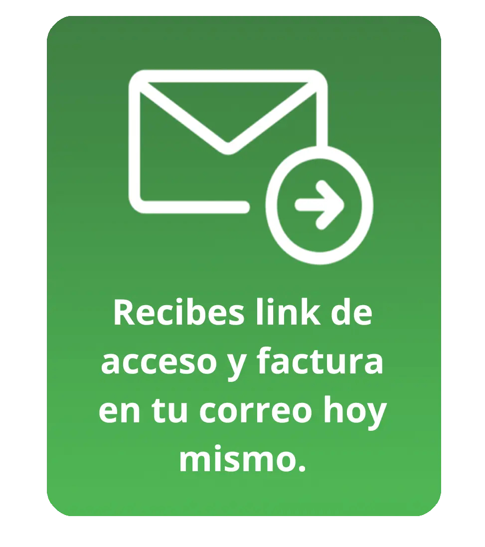 Inmediatamente haces el pago te llega al correo un usuario y contraseña para acceder a la plataforma. Disfruta tu proceso de aprendizaje y aprovecha al máximo.